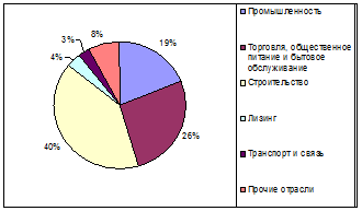 Рисунок 4.5 - Диаграмма структуры кредитного портфеля Томского филиала АКБ «МБРР» (ОАО) по отраслям на 01.01.2008 год