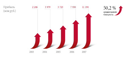 За последние пять лет Банк Москвы продемонстрировал значительный рост ключевых показателей бизнеса, опережая финансовый рынок. Так, прибыль до налогообложения Банка Москвы по РСБУ увеличилась в 5 раз – до 11,2 млрд. рублей (рис. 2.2)