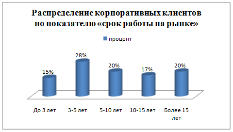 Таблица 2.3. Распределение корпоративных клиентов по показателю «срок работы на рынке».