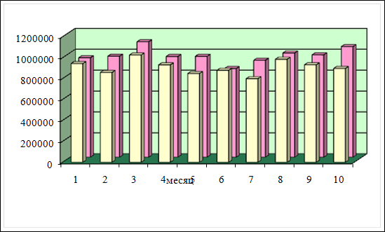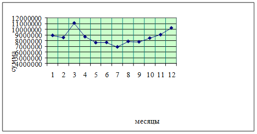 Анализируя поступления платежей по месяцам, необходимо отметить, что существует и сезонный фактор, т.е. увеличиваются суммы платежей в осенне-зимний период, а в летний, соответственно, уменьшаются. Графически это будет выглядеть следующим образом.