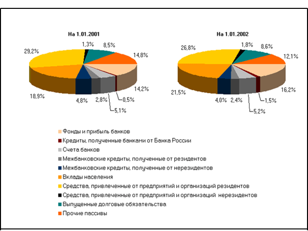Рисунок 9 – Структура пассивов банковского сектора в 2000 и 2001 годах