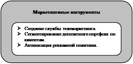 Комплекс мер, направленных на расширение депозитной базы Импэксбанка, включает ряд финансовых и маркетинговых инструментов, представленных ниже на рисунке 15.