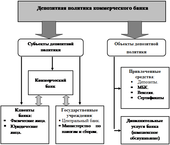 Рассматривая сущность депозитной политики коммерческих банков, необходимо затронуть такие вопросы, как: субъекты и объекты депозитной политики, принципы ее формирования, а также границы депозитной политики.