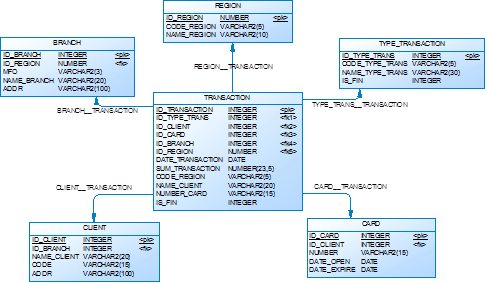 from TRANSACTION, TYPE_TRANSACTION, CARD, CLIENT, BRANCH, REGION