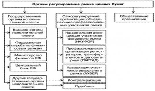 Государственные органы регулирования. К органам регулирования рынка ценных бумаг относятся все органы государственной власти: президент, правительство, министерства и иные органы исполнительной власти.