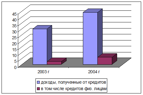 Доля доходов от кредитования населения от общих, полученных в от предоставления кредитов в 2003 г. составила 9%, а в 2004 г. 15 %.