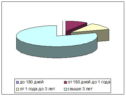 Основным критерием приоритетности сделки для ОСБ остается степень его доходности и надежности, исходя из условий рынка, предпочтение отдавалось сделкам с короткими и средними (до 6 месяцев) сроками таемости. Положительная тенденция в экономике сказывается на сроках кредитования - на 1 января 2005 удельный вес кредитов населения со сроком кредитования свыше 3 лет в кредитном портфеле составил 80 %.