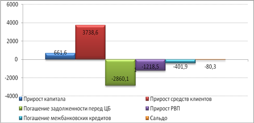 Из приведенного графика видно, что наибольшее снижение ресурсной базы в последнее время произошло по причине погашения кредитов Банку России. Вместе с тем, эти ресурсы были изысканы за счет огромного привлечения средств юридических лиц (451 млрд руб. за 2009 год и первое полугодие 2010 года) и физических лиц (2528,3 млрд руб за тот же период).