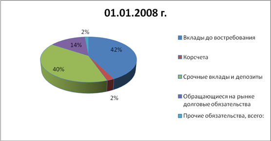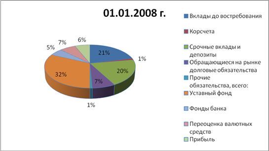 Рисунок 2.2. Структура обязательств банка на 01.01.2008 г.