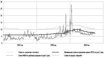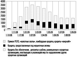 Банк России также предоставлял кредитным организациям кредиты «овернайт» для завершения операционного дня: объем этих операций за январь-август 2009 года составил 234 млрд. рублей.