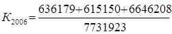 Коэффициент текущей ликвидности в 2006 году, по сравнению с 2005, увеличился на 6%. Найденное значение выше нормативных показателей. Нормативное значение коэффициента 0,15 – 0,20.