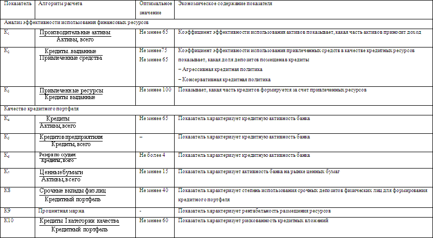 Уменьшение данного показателя показывает, что произошло снижение удельного веса ссудной задолженности в общей сумме активных операций | |