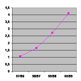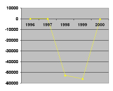 Рис 3. Показатель эффективности развития личного страхования по РФ в 1996-2000 гг.