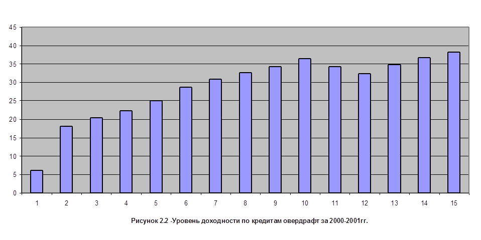 Рисунок 2.2 – Уровень доходности по кредитам «овердрафт» за 2005-2006гг.