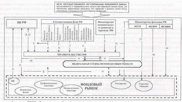 Роль непосредственного регулятора российского фондового рынка выполняет Федеральная служба по финансовым рынкам (ФСФР). ФСФР является федеральным органом исполнительной власти и осуществляет функции по контролю и надзору на финансовых рынках (13).