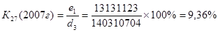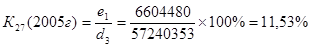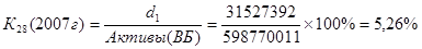 К27 - уровень чистого процентного дохода. Оптимальное значение 6,0-18,0%, фактические значения за три года находились в пределах этого диапазона. В 2005 г. - 11,53%, в 2006 г. – 9,54% и в 2007 г – 9,36%. Это свидетельствует о том, что процентная политика банка консервативная.
