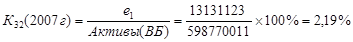 К32 - процентная маржа. Значение коэффициента для банка в 2005 г. составило 2,55%, что находится в пределах оптимального значения (1,0-4,0) и говорит об эффективном управлении спредом. К 2006 г. данный показатель снизился и стал равен 2%, что находится также в пределах нормы и в 2007 году значение также остается в пределах нормы. Из этого следует, что банк проводит эффективную политику в области управления спредом.