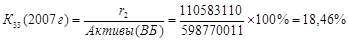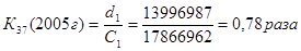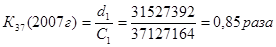 Экономическая отдача капитала незначительно возросла в 2007 году по сравнению с 2005 годом с 0,222 до 0,235 или на 0,013 руб./руб. При этом показатель Е не менялось.
