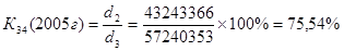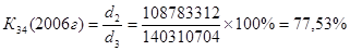 К34 - непроцентные доходы. Фактическое значение показателя составило 75,54% в 2005 г., 77% в 2006 г., и 77,5% в 2007 г., что намного выше оптимального предела значений (5%-15,0%). Но из этого можно сделать вывод о том, что у Банка Москвы слишком завышена величина внутрибанковских резервов и из-за этого банк недополучает ту сумму доходов, которую он мог бы получить, понизив свои внутрибанковские резервы.