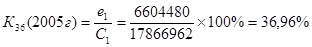 К36 - процентная маржа. У Банка Москвы значение данного коэффициента в 2005 г. превышало норму (10,0-35,0) и составляло 36,96%, в 2006 г. значение снизилось до 34,6% и в 2007 году – выросло до 35,3%. Из этого следует, что размер экономической добавленной стоимости составил 37%, 34% и соответственно 35%. Это еще раз подтверждает вывод, сделанный в К32.