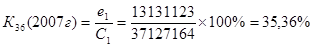 К35 - непроцентные расходы; качество управления издержками банка. Значение этого коэффициента у анализируемого банка в 2005 г. – 77,8%, в 2006 г. – 78,5% и в 2007 г. – 78,8%. Это говорит о том, что у банка высокие непроцентные расходы, приходящиеся на 1 рубль активов. Банку необходимо более тщательно отслеживать направления расходов, не связанные с выдачей кредитов и привлечением депозитов.