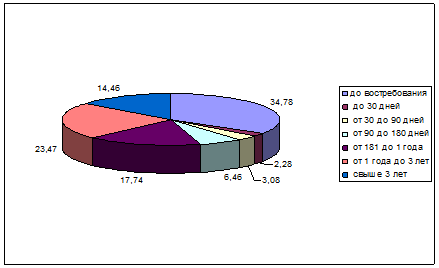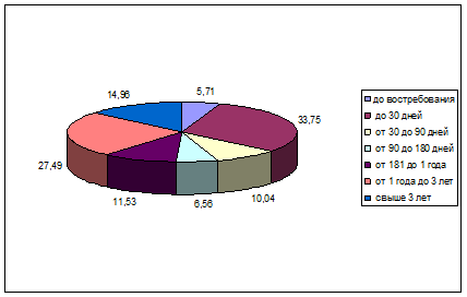 Рис. 3. Распределение долей предоставленных кредитов российскими кредитными организациями в рублях в зависимости от срока погашения (%) [14]