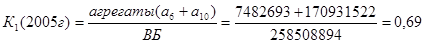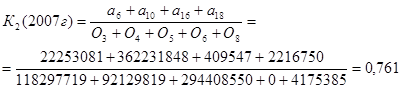 К1 - удельный вес (доля) доходообразующих активов в совокупных активах. К1 в 2005 г. был равен 0,69, в 2006 г. снизился и составил 0,642, и в 2007 году не изменился и также составил 0,643. Это говорит о снижении активов, приносящих доход банку и увеличение ликвидной позиции, что также свидетельствует о нецеленаправленной политике банка по улучшению общего финансового состояния банка. Также можно сказать, что доля доходообразующих активов составляет 69%, 64% и 64% соответственно.