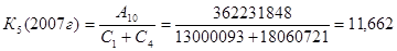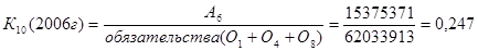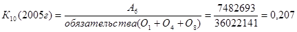 К10 - потенциальный запас ликвидности. Значение коэффициента в 2005 г. - 0,207, в 2006 г. - 0,247, в 2007г. – 0,233, что вполне соответствует норме (0,15-0,4) за все периоды. В этом случае у банка минимальный риск ликвидности при использовании вторичных ликвидных ресурсов (портфеля ценных бумаг).