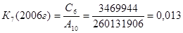 К6 - удельный вес просроченной задолженности в ссудном портфеле банка. Для Банка Москвы этот показатель за три года составил 0,002; 0,005; и 0,007 соответственно. Это позитивная тенденция, так как значение этого коэффициента находится в пределах нормы, т.е. доля просроченной задолженности не должна превышать 4% от общей суммы выданных кредитов.