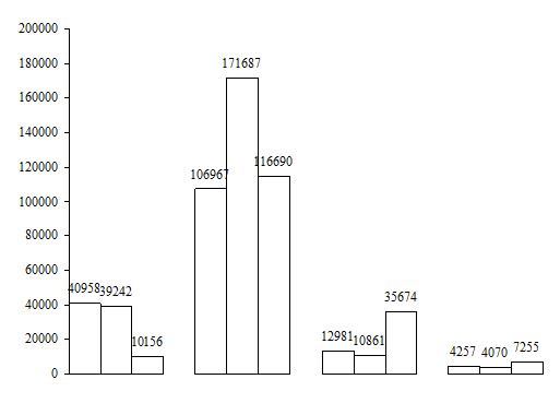 Изобразим данные таблицы 1 с помощью графиков (рисунок 2, рисунок 3).