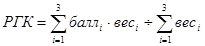 Рассчитаем обобщающий результат по группе показателей оценки капитала (РГК), представляющий собой среднее взвешенное значение показателей ПК1,ПК2, ПК3. Расчет обобщающего результата производится по следующей формуле:
