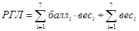 Обобщающий результат по группе показателей оценки ликвидности (РГЛ) представляет собой среднее взвешенное значение показателей и рассчитывается по следующей формуле: