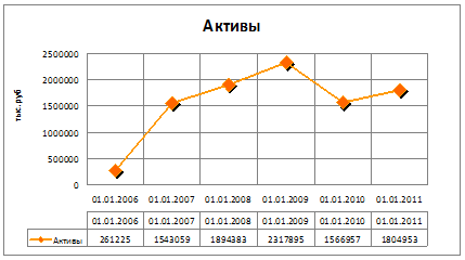 Динамика изменения активов аналогична обязательствам – резкое снижение в 2009 и относительно слабый рост в 2010.