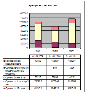 С 2010 года Форус Банк значительно сократил выдачу кредитов предприятиям и организациям, по физ.лицам тоже есть такая тенденция, но к 2011 кредиты возросли, хотя несколько поменялась их структура. Полагаю, что Форус Банк предложил заемщикам со сложным финансовым .положением пролонгацию кредита, так как иначе просрочка бы выросла более значительно.