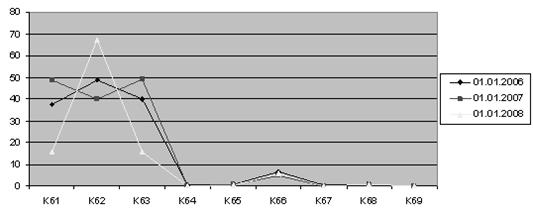 В силу вышеназванных причин, показатель высоколиквидных активов банка (Кб3) претерпел значительное изменение и составляет всего 15,67 % в 2007г. по сравнению с 40,18 в 2005г.