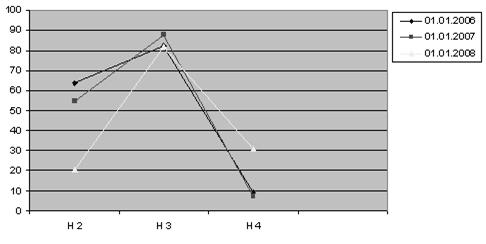 Значение норматива текущей ликвидности Н3 вполне удовлетворяет нормативно установленному значению, хотя в 2008 году заметно некоторое снижение данного показателя (несмотря на увеличение доли ликвидных активов).
