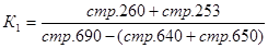Коэффициент абсолютной ликвидности К1 является наиболее жестким критерием ликвидности предприятия и показывает какая часть краткосрочных долговых обязательств может быть при необходимости погашена за счет имеющихся денежных средств, средств на депозитных счетах и высоколиквидных краткосрочных ценных бумаг (строка 690 баланса за вычетом строк 640 - "доходы будущих периодов", 650 - "резервы предстоящих расходов "):