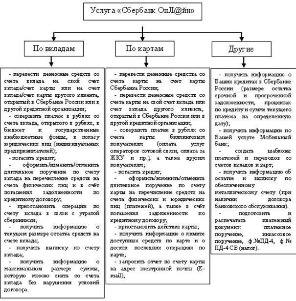 При этом Кировское ОСБ № 6991/0207 будет предоставлять Клиентам услуги «Сбербанк ОнЛ@йн», указанные на рисунке 12, при условии наличия на счете Клиента денежных средств, достаточных для совершения операции и взимания Банком платы в соответствии с тарифами.