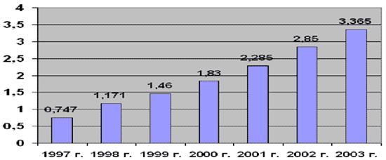 Рост оборотов электронной коммерции «Business to consumer» в России, млн. долл. (по данным The Economist, Boston Consulting Group):