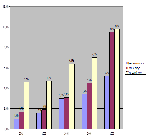 Региональная структура потребительского кредитования в России на конец 2009 года, %