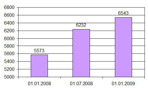 Сберегательным банком России установлено 6543 штук банкоматов на 01.01.2008 г (рис. 9).