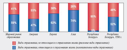 В Республике Беларусь за 2008 г. удельный вес накопительных видов составил 5%, в то время как на начало 90-х годов он в полной мере соответствовал мировым показателям.