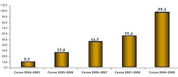 Объемы финансирования "Россельхозбанком" сезонно-полевых работ, млрд. руб. [20, с.6]