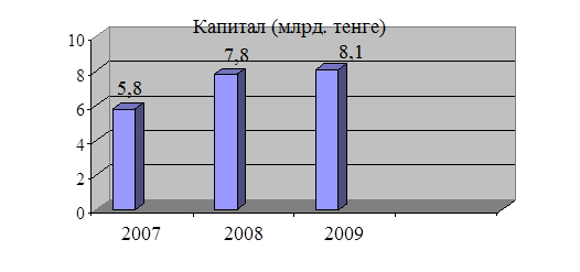 Собственный капитал на конец 2009 года составил 8 053,6 млн. тенге, увеличившись на 2,7%. Размеры уставного капитала сохранились на уровне 2009 года (5 422,6 млн. тенге). Низкие темпы роста капитала банка в течение всего года являлись ограничительным фактором роста активов банка и объемов привлечения ресурсов.