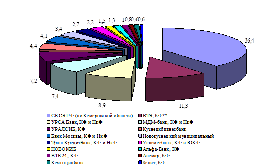 Структура банков СФО по объемам размещенных средств юридических лиц