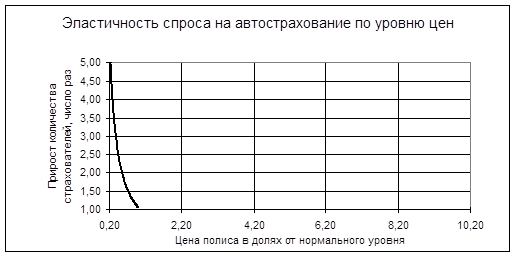Из сопоставления графиков видно, что наиболее эластичным является спрос на автострахование, а наименее эластичным — спрос на страхование недвижимости физических лиц. Это свидетельствует о том, что потребители наиболее чувствительны к цене автострахования, оценка стоимости полисов страхования недвижимости является менее острой. Причин тому может быть несколько. Во-первых, более высокий уровень цен на автострахование приводит к тому, что одно и то же удельное изменение приводит к гораздо большему приросту реальной стоимости полиса. Во-вторых, как было показано выше, чувствительность к риску пожара намного выше, чем к риску автокатастрофы. Соответственно, уровень цен на страхование недвижимости оказывает меньшее влияние на соотношение «цена-качество» страхового продукта, чем в случае автострахования.
