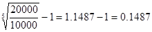 В нашем случае, PV=10000, FV=20000, n=5, тогда r=