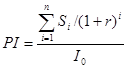 где Si – денежные поступления в i-м году, I0 –первоначальные инвестиции, r – норма прибыльности.