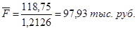 F = 100 * (1+0,25*0,2 + 0,25*0,25 + 0,25*0,3) = 118,75 тыс. руб.