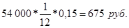 I1 = 15 000 * 0,5 * 0,12 = 900 руб.